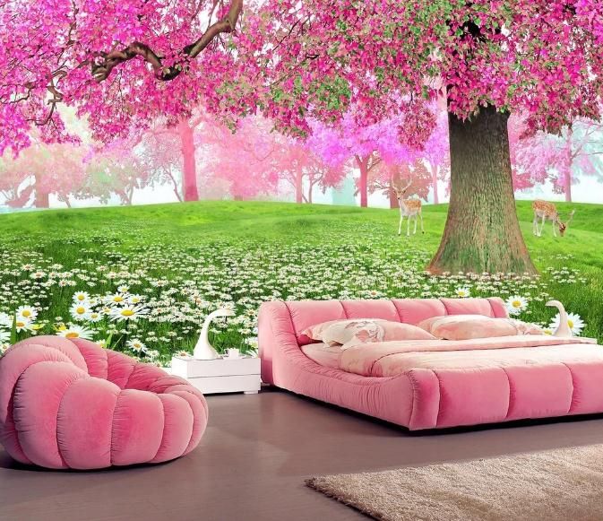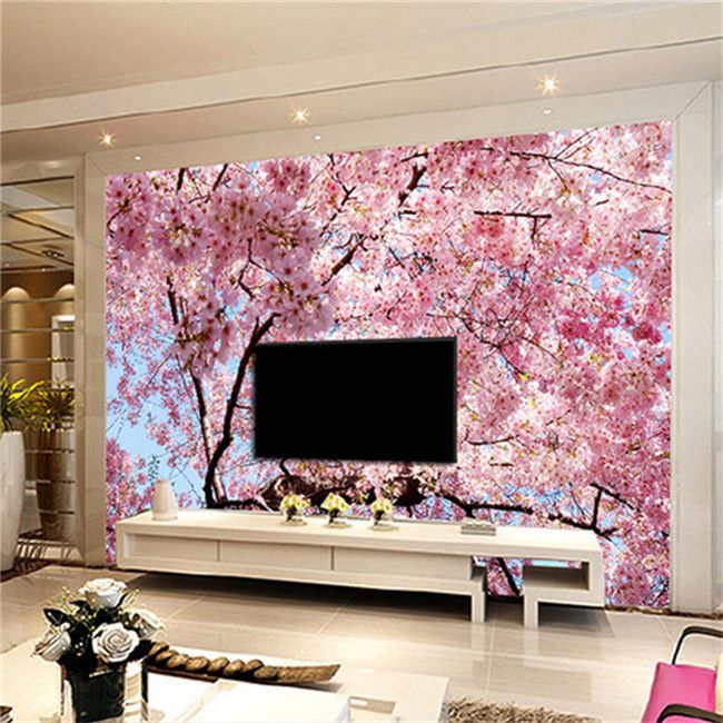 Custom 3d Photo Wallpaper Flower Romantic Cherry Blossom Tree