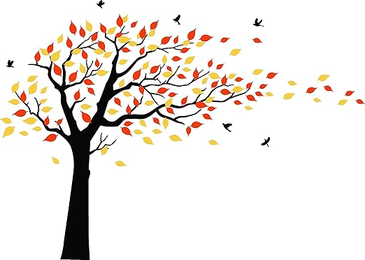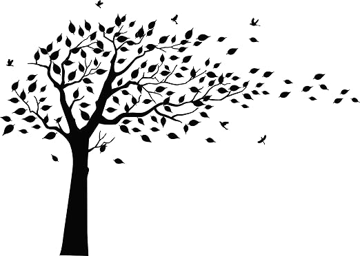 Tall Tree Wall Decal Wind Blowing Flying Leaves Large Tree Decal