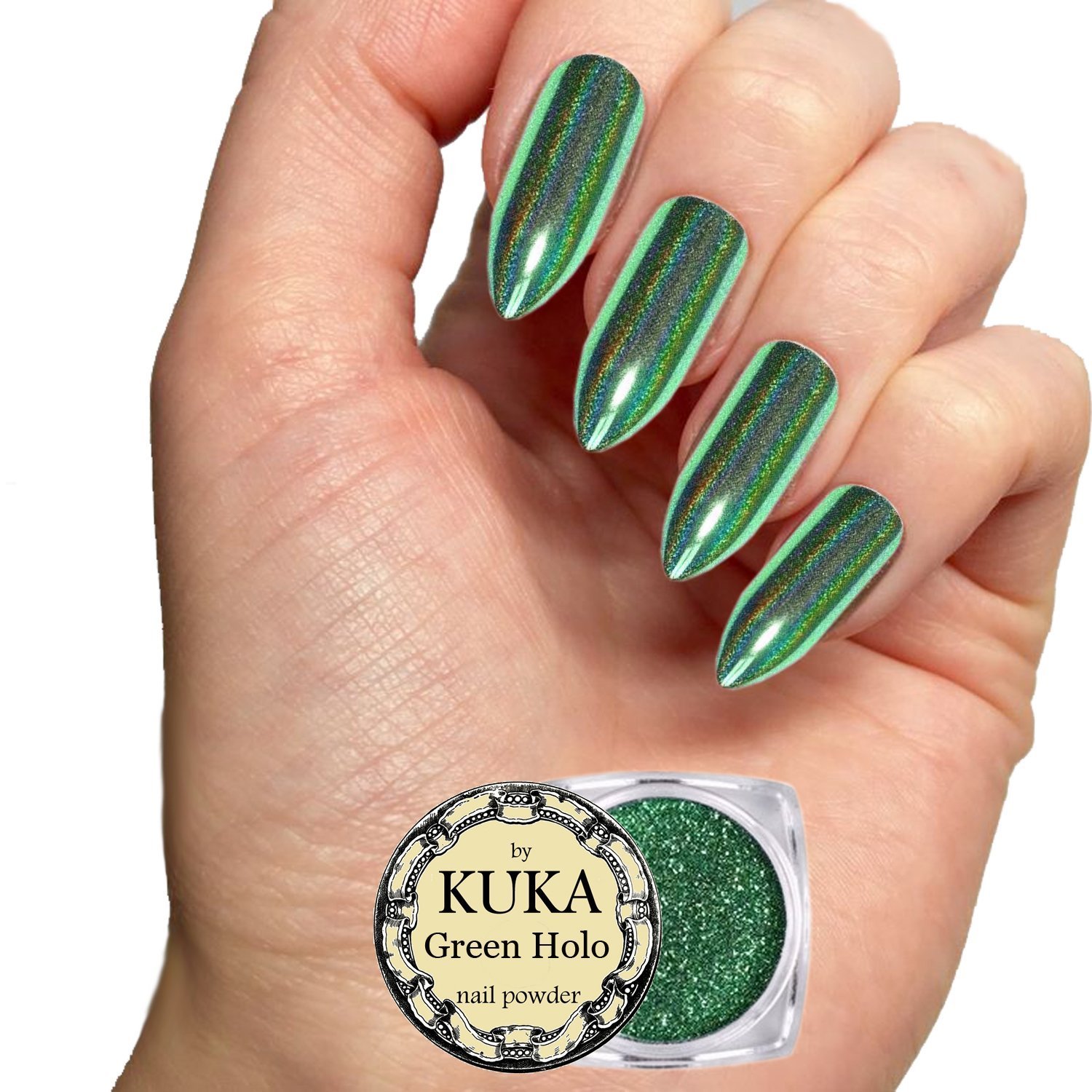 Holographic Acrylic Nail Powder Chrome Glitter Iridescent Mirror Polish Gel Extensions Art Pigment Kit Green Holo