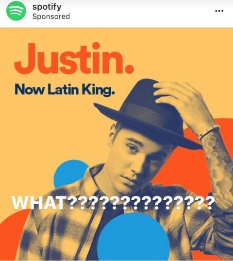 Now, Spotify is getting heat for running a new sponsored Instagram advert calling Justin a "Latin King."